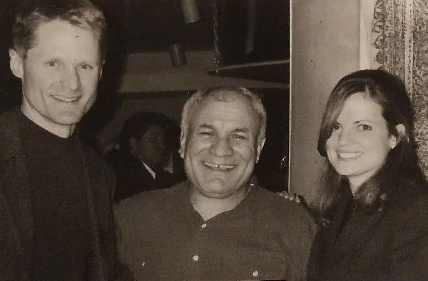Chicago Bull Steve Kerr and his wife, Margot with Max Pars (center) after a meal at Pars Cove during the 1990s championship years. Kerr, whose father was assassinated while president of the American University of Beirut, grew up in the Middle East. (Courtesy of Pars Cove.)